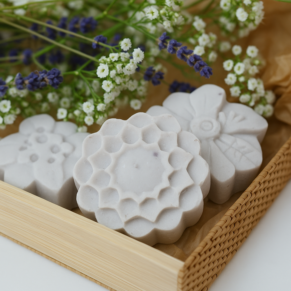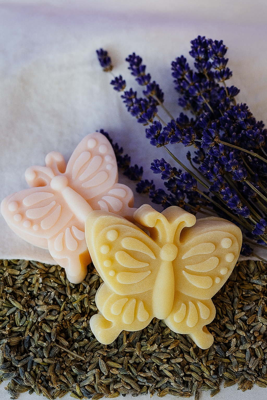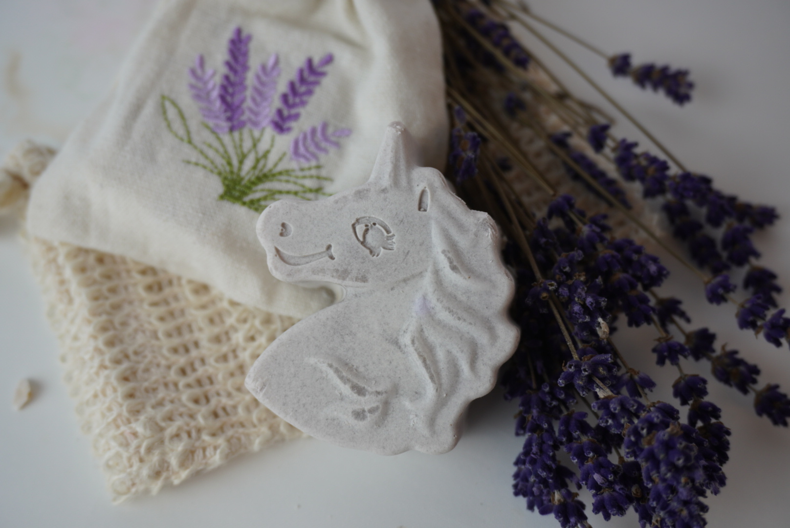 In deze batches hebben we ook eenhoorns (unicorns), grote bloemen en kattenkopjes gemaakt. Zoals al onze zepen is ook deze zeep vegan, biologisch afbreekbaar en zacht voor de (gevoelige) huid.